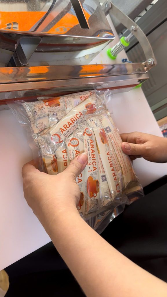 Niêm phong túi zip: Đối với cà phê rang xay, hàng sẽ được bọc túi zip chắc chắn trước khi đóng thùng carton tiêu chuẩn.
